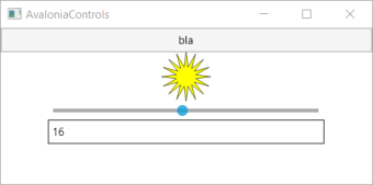 So sieht die Anwendung dann aus. Bewegt man den Slider, so ändert sich auch das Textfeld und der Stern malt sich korrekt neu. Man kann auch in das Textfeld die gewünschte Zahl eingeben und der Slider passt sich an, wie auch in der Folge der Stern. Dies zeigt die Mächtigkeit dieser Datenbindung. Wenn jetzt noch die Bindung gegenüber einem Datenmodell hinzukommt, wird es richtig spannend.